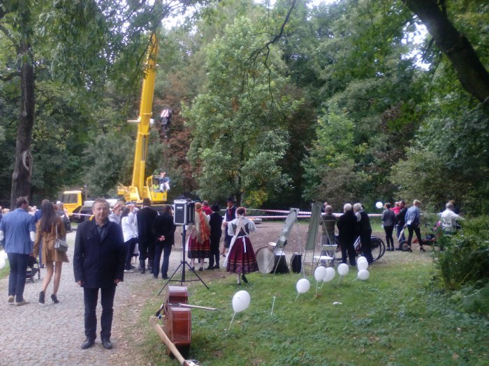 Dźwigiem została przetransportowana metalowa skrzynia, zwana kapsułą czasu, do specjalnego pomieszczenia w parku pszczyńskim, która zostanie otwarta za 100 lat . Wśród pamiątek dla potomnych znalazły się też nasze rekwizyty: historia stowarzyszenia i muzeum, odciski naszych służbowych pieczęci, książka – przewodnik po muzeum, wizytówka i folder. Pozostaje pytanie, czy będzie jeszcze ktoś, kto ją – kapsułę czasu – otworzy…