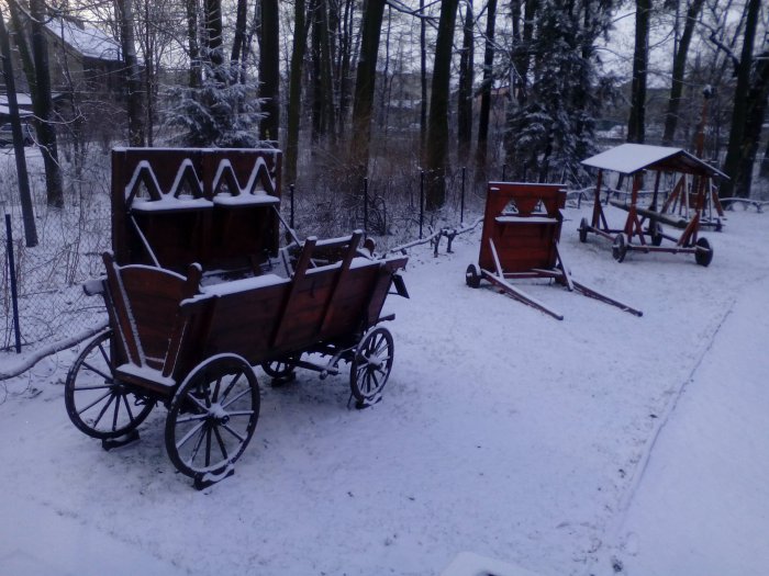 Nadeszła zima. Spadł śnieg. Nasze muzeum otuliło się białą kołderką.Tylko święty Florian jak zwykle czuwa i za nic ma mróz i śnieg
