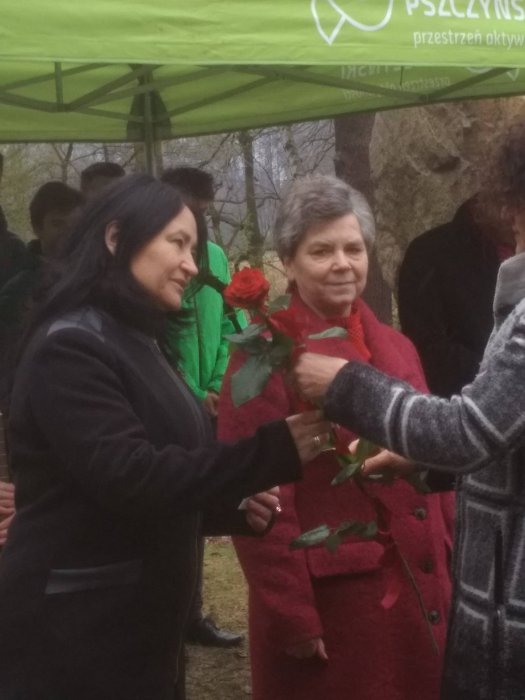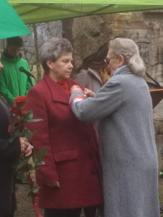 Mimo chłodu nie zabrakło przed­staw­icieli naszego sto­warzyszenia, a nasza Członk­ini – Sybiraczka Pani Irena Sar­biewska oraz zaprzy­jaźniona z nami Dyrek­tor „Samo­chodówki” – Pani Teresa Woj­tanow­icz otrzy­mały – odz­naczenia – krzyże sybirackie. Gratulujemy !!!