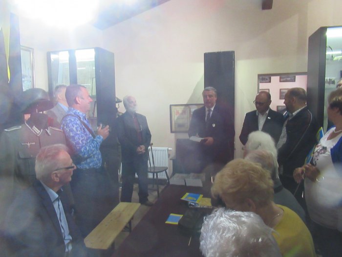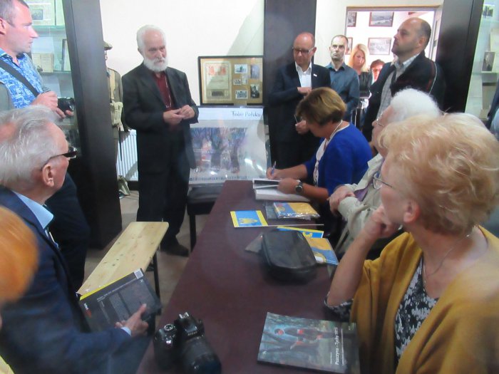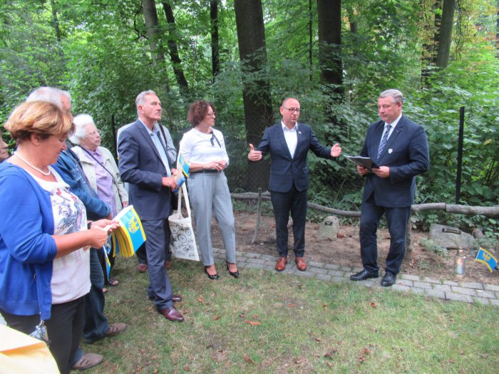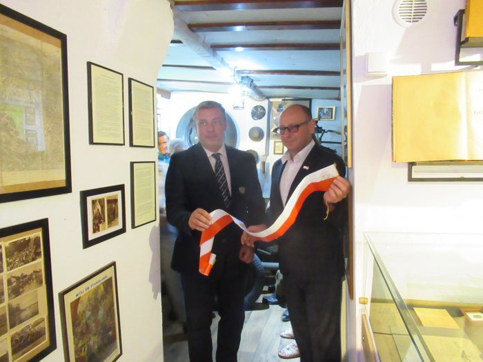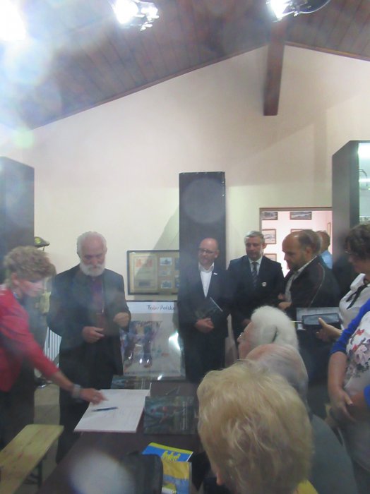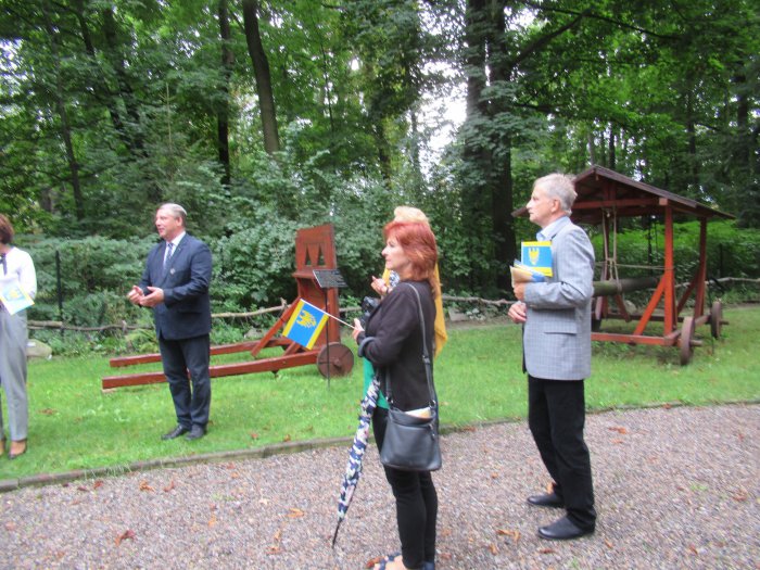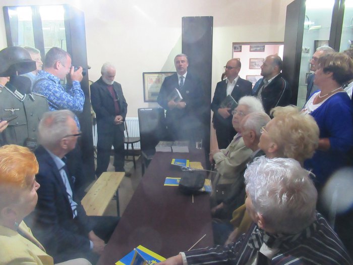 Rano otwarliśmy wystawę z udziałem władz miejskich Pszczyny oraz Starostwa Pszczyńskiego. Burmistrz Pszczyny Pan Dariusz Skrobol, pochodzący z rodziny o powstańczych tradycjach oficjalnie otwarł wystawę, po czym zaproszeni goście podeszli pod nasze lapidarium, gdzie Pani Starosta Barbara Bandoła zapaliła w imieniu całej społeczności pszczyńskiej symboliczny znicz przy obelisku upamiętniającym pierwsze powstanie śląskie. Została po raz pierwszy publicznie przedstawiona nowa flaga Pszczyny, zaakceptowana przez genealogów. Później nastąpiło zwiedzanie muzeum i krótki poczęstunek po czym odbyła się promocja książki Pana Prof. Mariana Małeckiego poświęcona I powstaniu śląskiemu na ziemi pszczyńskiej. . Uroczystość uświetnił swoim wykładem Pan Aleksander Spyra, znany społecznik i działacz na ziemi pszczyńskiej a także uznany artysta. Przekazał on do naszego muzeum unikatowy obraz malowany kredką,ukazujący wizję trzech powstań śląskich, których symbolem są „Trzy dęby” w parku pszczyńskim. Była to połowa uroczystości tego dnia. Reszta miała miejsce wieczorem Wszystkim uczestnikom, którzy przyjęli zaproszenie, wśród nich władzom powiatu i samorządu, rodzinom powstańców śląskich, Panu por. Alfonsowi Mrzykowi, żołnierzowi II Korpusu Polskiego i wszystkim zacnym Gościom – także spoza Pszczyny, z Radlina składamy serdeczne podzikowania za uświetnienie swoją obewcnością tych uroczystości.