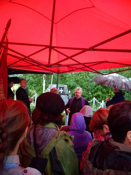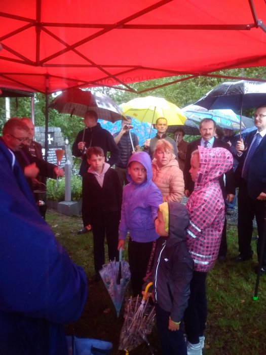 W strugach zacinającego deszczu i zimnego wiatru proboszcz ćwiklickiej parafii ks. Sylwester Suchoń wraz z pozostałymi kapłanami (w tym członkiem naszego stowarzyszenia, Księdzem Proboszczem Arturem Wyrobkiem) poświęcili brzozowy krzyż, który upamiętnia bohaterską walkę żołnierzy 16 pułku piechoty, którzy na tym polu zginęli. Jak stwierdził Ks. Proboszcz Suchoń, to jakby płacz przyrody po żołnierzach, którzy równo 80 lat temu oddali tu swoje życie. Oni nie wybierali ani dnia ani miejsca swej śmierci. Msza św. – początkowo jako polowa – z uwagi na warunki atmosferyczne – została przeniesiona do kościoła pod wezwaniem św. Marcina w Ćwiklicach. Tam odbyła się prelekcja Pana prof. Mariana Małeckiego na temat samej bitwy i jej rozmiarów, rozdanie publikacji autorstwa Panów Stanisława Janosza i Mariana Małeckigo „Bitwa pod Pszczyną w 15 odsłonach”, która została wydana w 80-rocznicę bitwy staraniem Pana Burmistrza Pszczyny – Dariusza Skrobola, obecnego na uroczystości. Wśród zaproszonych gości byli też nauczyciele z miejscowych szkół, mieszkańcy z okolicznych miejscowości a nawet z dalszych strona jak z Wodzisławia czy z Radlina. Dzięki staraniom sołtysa na koniec uroczystości Koło Gospodyń Wiejskich uraczyło zebranych śląskim kołoczem i kawą. Nadleśnictwo ufundowało tablice, które stoją pod ćwiklickim pomnikiem a których autorami są Panowie Stanisław Janosz i prof. Marian Małecki. Pan Tomasz Waloszek przygotował oprawę pod uroczystości i był głównym autorem samej koncepcji krzyża. Został naprawiony stan nawierzchni drogi prowadzącej do pomnika. Pozostaje oznakowanie dojazdu do pomnika bitwy pod Ćwiklicami, które miejmy nadzieję, zostanie w bliższej perspektywie czasowej zrealizowane. Wszystkim uczestnikom, którzy wczoraj uświetnili tę uroczystość składamy serdeczne podziękowania i wyrazy szacunku. Najwięcej podziękowań składamy żołnierzom polskim. Co godne podkreślenia – Małopolanie przelali krew na Śląsku pod Pszczyną, Ślązacy w Małopolsce pod Proszowicami. Gloria Victis !!!