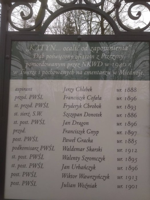 Wczo­raj 13 kwiet­nia 2019 r. obchodzil­iśmy dzień pamięci o zbrodni katyńskiej. Wśród ofiar tej masakry znaleźli się także Pszczynianie.