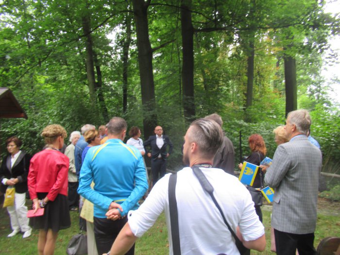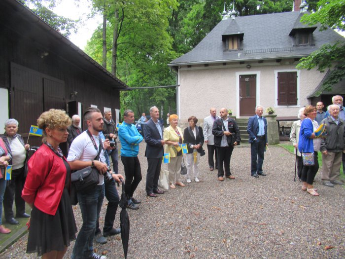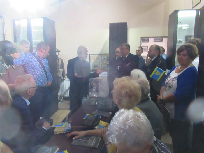 Rano otwarliśmy wystawę z udziałem władz miejskich Pszczyny oraz Starostwa Pszczyńskiego. Burmistrz Pszczyny Pan Dariusz Skrobol, pochodzący z rodziny o powstańczych tradycjach oficjalnie otwarł wystawę, po czym zaproszeni goście podeszli pod nasze lapidarium, gdzie Pani Starosta Barbara Bandoła zapaliła w imieniu całej społeczności pszczyńskiej symboliczny znicz przy obelisku upamiętniającym pierwsze powstanie śląskie. Została po raz pierwszy publicznie przedstawiona nowa flaga Pszczyny, zaakceptowana przez genealogów. Później nastąpiło zwiedzanie muzeum i krótki poczęstunek po czym odbyła się promocja książki Pana Prof. Mariana Małeckiego poświęcona I powstaniu śląskiemu na ziemi pszczyńskiej. . Uroczystość uświetnił swoim wykładem Pan Aleksander Spyra, znany społecznik i działacz na ziemi pszczyńskiej a także uznany artysta. Przekazał on do naszego muzeum unikatowy obraz malowany kredką,ukazujący wizję trzech powstań śląskich, których symbolem są „Trzy dęby” w parku pszczyńskim. Była to połowa uroczystości tego dnia. Reszta miała miejsce wieczorem Wszystkim uczestnikom, którzy przyjęli zaproszenie, wśród nich władzom powiatu i samorządu, rodzinom powstańców śląskich, Panu por. Alfonsowi Mrzykowi, żołnierzowi II Korpusu Polskiego i wszystkim zacnym Gościom – także spoza Pszczyny, z Radlina składamy serdeczne podzikowania za uświetnienie swoją obewcnością tych uroczystości.