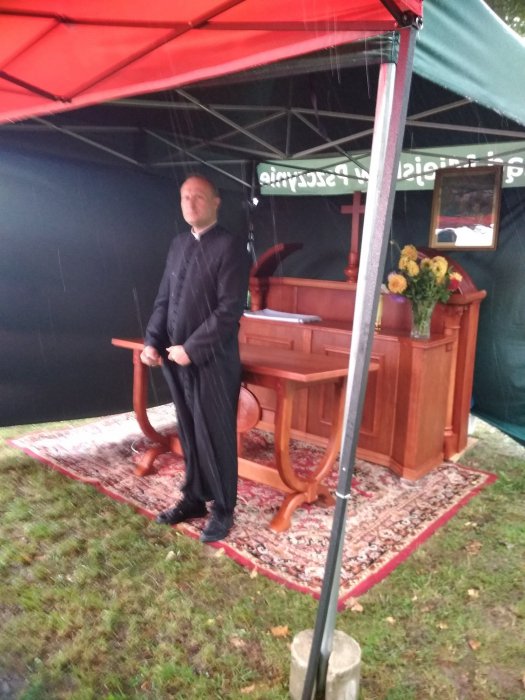 W strugach zacinającego deszczu i zimnego wiatru proboszcz ćwiklickiej parafii ks. Sylwester Suchoń wraz z pozostałymi kapłanami (w tym członkiem naszego stowarzyszenia, Księdzem Proboszczem Arturem Wyrobkiem) poświęcili brzozowy krzyż, który upamiętnia bohaterską walkę żołnierzy 16 pułku piechoty, którzy na tym polu zginęli. Jak stwierdził Ks. Proboszcz Suchoń, to jakby płacz przyrody po żołnierzach, którzy równo 80 lat temu oddali tu swoje życie. Oni nie wybierali ani dnia ani miejsca swej śmierci. Msza św. – początkowo jako polowa – z uwagi na warunki atmosferyczne – została przeniesiona do kościoła pod wezwaniem św. Marcina w Ćwiklicach. Tam odbyła się prelekcja Pana prof. Mariana Małeckiego na temat samej bitwy i jej rozmiarów, rozdanie publikacji autorstwa Panów Stanisława Janosza i Mariana Małeckigo „Bitwa pod Pszczyną w 15 odsłonach”, która została wydana w 80-rocznicę bitwy staraniem Pana Burmistrza Pszczyny – Dariusza Skrobola, obecnego na uroczystości. Wśród zaproszonych gości byli też nauczyciele z miejscowych szkół, mieszkańcy z okolicznych miejscowości a nawet z dalszych strona jak z Wodzisławia czy z Radlina. Dzięki staraniom sołtysa na koniec uroczystości Koło Gospodyń Wiejskich uraczyło zebranych śląskim kołoczem i kawą. Nadleśnictwo ufundowało tablice, które stoją pod ćwiklickim pomnikiem a których autorami są Panowie Stanisław Janosz i prof. Marian Małecki. Pan Tomasz Waloszek przygotował oprawę pod uroczystości i był głównym autorem samej koncepcji krzyża. Został naprawiony stan nawierzchni drogi prowadzącej do pomnika. Pozostaje oznakowanie dojazdu do pomnika bitwy pod Ćwiklicami, które miejmy nadzieję, zostanie w bliższej perspektywie czasowej zrealizowane. Wszystkim uczestnikom, którzy wczoraj uświetnili tę uroczystość składamy serdeczne podziękowania i wyrazy szacunku. Najwięcej podziękowań składamy żołnierzom polskim. Co godne podkreślenia – Małopolanie przelali krew na Śląsku pod Pszczyną, Ślązacy w Małopolsce pod Proszowicami. Gloria Victis !!!