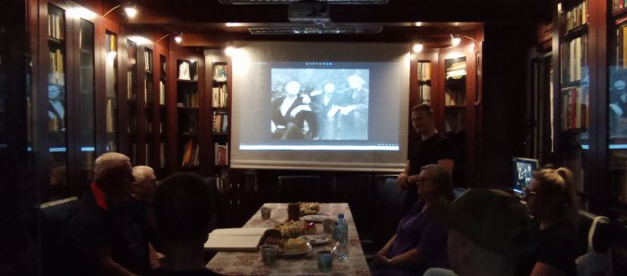 Wykład przedzielony był filmami o legendach pszczyńskiej Akademii Sztuk Walki – braćmi Józefem i Janem Brudnymi oraz pokazem walki w plenerze. Okazuje się, że Pszczyna na świecie kojarzona jest nie tylko z zabytkami ale i ze stworzoną przez Braci Brudnych Akademią Sztuk Walki. Za wyjątkowy pokaz i wykład ale i przedstawienie niezwykłej historii rozwoju sztuk walki w Pszczynie serdecznie naszemu Prelegentowi dziękujemy !